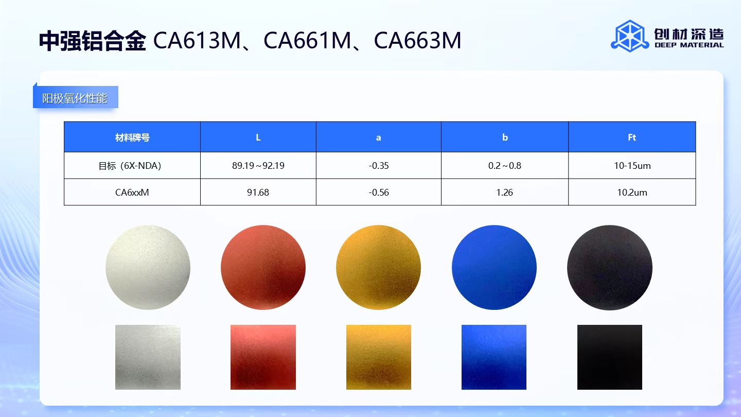 针对3C电子领域的中强铝合金家族包括CA613M、CA661M和CA663M三款产品,成功解决传统6系铝合金打印开裂问题,热处理后抗拉强度可达450MPa,延伸率不低于11%,阳极氧化效果卓越,室温热导率高达217 W/(m*K),常规价350元/公斤,年内价格280元/公斤,为消费电子外观件制造提供全新选择。